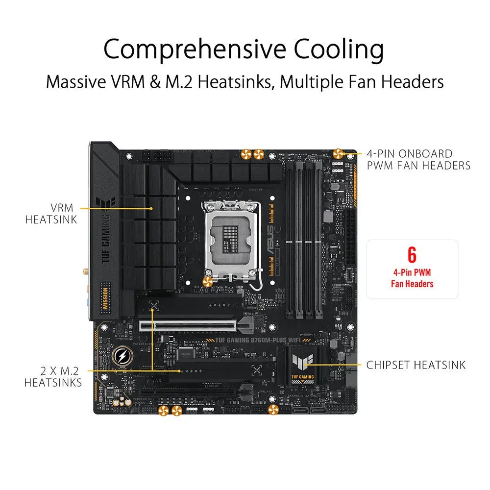 • The ASUS TUF Gaming B760M-PLUS WIFI Micro-ATX motherboard is designed to support latest Intel Socket LGA 1700 for 13th Gen and 12th Gen Intel Core processors, Pentium Gold and Celeron Processors.