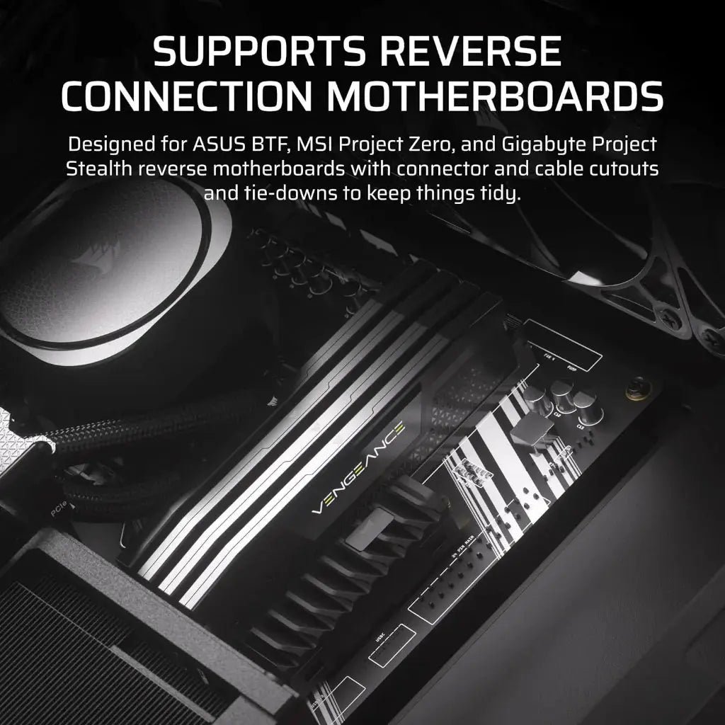 InfiniRail Fan Mounting System: This innovative system allows for flexible fan placement, supporting fans up to 200mm in the front and 140mm in the roof, ensuring optimal airflow and cooling.