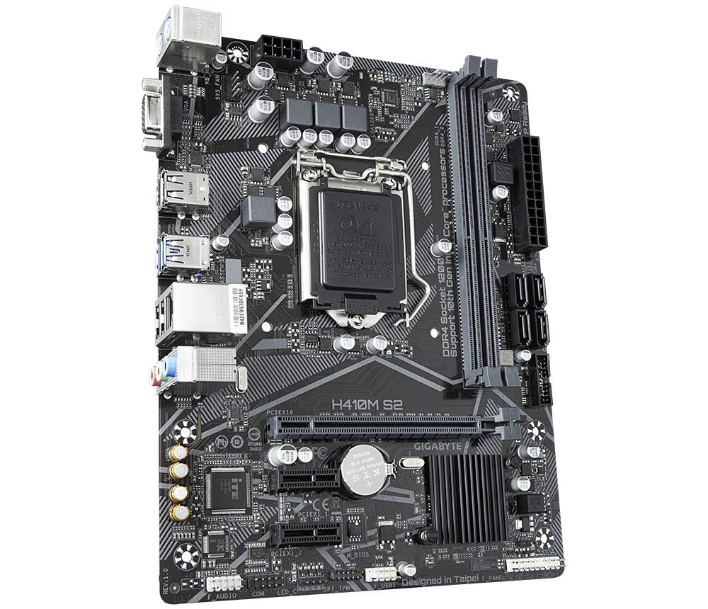 - GIGABYTE H410M S2 Micro-ATX DDR4 motherboard is designed to support latest Intel Socket LGA 1200 for 10th Gen, 12th Gen Intel Core processors and Pentium Gold and Celeron Processors.