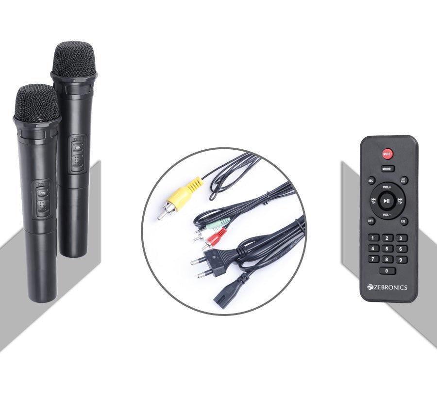 | Wireless BT / USB / Micro SD / FM / AUX / Mic Input x 2 |